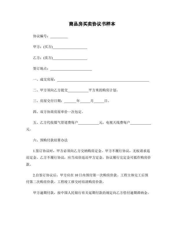 商品房买卖合同(预售)示范文本