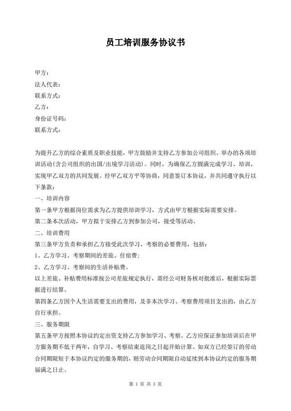 培训协议